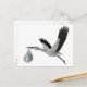 Classic depiction of a stork in flight delivering a newborn baby on white background. Add your own slogan. Great for announcements, invitations, note cards, congratulations and thank-you cards.