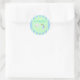 This cute design features a flying stork and a baby boy. The background is striped along with solid colours of light blue and light green.
