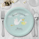 A cute white stork carries a baby in a yellow bundle through the sky, perfect plates for unisex or gender neutral baby shower. Click on Customise further link to change fonts, font colours, add or delete information or change layout. Also available in PINK and BLUE baby bundles. MATCHING invitations, napkins and more in our store.