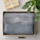 Dark stormy clouds are breaking apart in the foreground of this colour photograph. The cloud layers become lighter shades of grey deeper into the image. Hints of light blue sky are visible beyond the storm clouds as the weather starts to clear up.