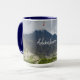 "Adventure time" Mug featuring a photo of magnificent mountains at stormy weather for outdoor enthusiasts, dreamers and adventure seekers. You can delete the text or replace it with your own message (click "Personalise this template").