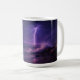 Under a glowing full moon, lightning strikes the ocean in a brilliant flash, illuminating crashing waves and stormy skies in violet hues. This striking design from the Serenity Series honours the wild, beautiful power of nature. Design by Callum AI – electrifying calm, bottled in a mug.
