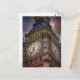 This striking postcard captures the Elizabeth Tower illuminated against a storm‑charged sky, where glowing clock faces meet flashes of distant lightning. The ornate Gothic details of the tower stand out in vivid contrast, creating a powerful and cinematic portrait of one of London’s most iconic landmarks. A memorable keepsake for travelers, architecture lovers, and anyone drawn to the dramatic beauty of the city.