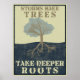 Grunge vintage style poster with a tree and quote - Storms make trees take deeper roots