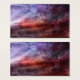 Swirling white fractal patterns over a backdrop of shades of orange and blue, like the sunrise breaking through the storm.