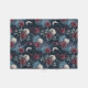 A dreamy fall rose pattern, with ethereal moons and big burgundy blooms floating in a rainy sky on a dark blue background.