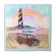Stormy Rainbow Lighthouse tile by ArtMuvz Illustration. Matching lighthouse t shirt, watercolor lighthouse apparel, nautical clothing, lighthouse collector apparel. Lighthouse gifts are a great way to show someone you care, especially if they love the ocean, the coast, or lighthouses themselves. Lighthouses are iconic symbols of hope, guidance, and safety, and they can make a beautiful and meaningful gift for any occasion. No matter what your budget is, there is sure to be a lighthouse gift that is perfect for the person you have in mind. TO PERSONALIZE add your name or add text instead. Customise this lighthouse tile to make it uniquely yours or to give as a personalised gift