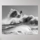An amazing black and white photograph of Roker a seaside town in the North East of England as waves crash over the pier and the lighthouse by the photographer Dave Fletcher