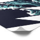 A bold graphic design featuring powerful ocean waves in shades of teal, turquoise, and deep blue, contrasted by sharp white lightning bolts cutting across a dark navy background. The dynamic composition combines the fluid motion of crashing waves with the jagged intensity of lightning, creating a dramatic and energetic visual that captures the raw force of nature.