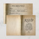 These whimsical response cards cards (flat, non-folding) feature a background of vintage parchment book pages and a sketch of a lovely tree. Set to include two menu entree choices, but you can delete those lines of text if you prefer, or add additional lines using the customise feature.