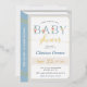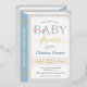 Gold foil and light blue baby boy shower invitation designed as a book cover. Great for a library building baby shower. For matching items, please visit https://www.zazzle.com/store/violinevents