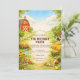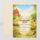 A whimsical storybook-style farm birthday design featuring a classic red barn, rolling green fields, hay bales, and friendly farm animals. The warm countryside illustration creates a cozy, timeless celebration feel, with a balanced layout and a clear center space for easy personalization. Perfect for kids who love animals, farms, and outdoor adventures.