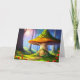 Illustrated fantasy storybook house in a mushroom in magical forest.
