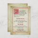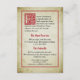 Accommodations card designed like a page from a book of fairytales. Printed to look weathered with foxed edges and stains, with red as an accent colour.