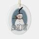 A snowman with a scarf and a high stovepipe hat and text that reads "SNOW" on a snowman keepsake holiday ornament you're sure to love for years to come!