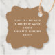 Quality is amazing, love that you have the flexibility to adjust images and scripting including fonts and size and can make double sided. Printing turned out perfect, as per design. Really great that it also comes with its own twine.