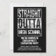 Add your text and event or graduation party details to this grad party invitation card. Straight outta your high school or college year class of, etc. Or customise the words to your year or school or anything! What are you representing? Add your event details and oher pertinent information for a custom grunge vintage weathered distressed street style "straight outta" or straight out of gift in black and white grungy text. Perfect for a band music, 1980s, 80s or 1990's 90s rap music street themed event.