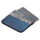 Straight stitch with orange thread on bleached den laptop sleeve