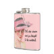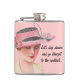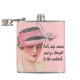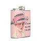 This flask features a vintage image of an elegant woman, on a customisable pink background, with the customisable text, "Let's skip dinner and go straight to the cocktails".