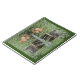 This notebook features chickens that look like they are stranded on a desert island.