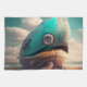 Whale sculpture on the beach, in the style of rendered in cinema4d, surrealistic grotesque, dreamlike illustration, dark cyan and green, concept art, gigantic scale, fish-eye lens