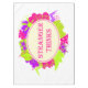 A quote in the style of the 80s in a colorful abstract frame with doodles