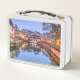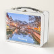 This is a standard metal lunchbox that appears to work just fine. We designed this box ourselves with an uploaded photo and custom text on the front and back. It looks absolutely beautiful except the front of the lunchbox is not centered like it shows in the photo. The print borders don't align with the inset flat part of the box where the preview photo online showed it perfectly centered in there. The back looks nice and centered though.