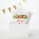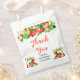 This beautiful and elegant birthday thank you favor bag features watercolor strawberries, daisies and foliage. The text combines handwritten script and serif fonts for a stylish and modern look. This is perfect for a spring or summer rustic birthday.