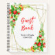 This beautiful and elegant wedding guest book features watercolor strawberries, daisies and foliage on a gold geometric frame. The text combines handwritten script and serif fonts for a stylish and modern look. This is perfect for a spring or summer rustic wedding.