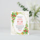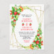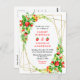 This fun and whimsical wedding postcard features watercolor strawberries, daisies and foliage on a gold geometric frame. The text combines handwritten script and serif fonts for a stylish and modern look. This is perfect for a summer rustic wedding.