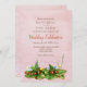 This strawberries in a meadow wedding invitation card features a cluster of wild strawberry plants at the lower portion of the card showing off their multitude of tiny, ripe, red strawberries, with tiny yellow buttercups, blue forget-me-nots and a single daisy peeking out from between the strawberry leaves - your wedding details are on a semi-transparent white square frame graphic that partially reveals the pale pink watercolor wash background - by katz_d_zynes | Part of katzdzynes’ Strawberries and Wildflowers collection >> https://www.zazzle.com/collections/119185498872390969