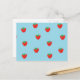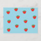 Strawberries Blue postcard. Customisable postcard has cute red strawberries on a light blue background.