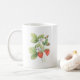 Watercolour painting of a strawberry plant with fruit, flowers and leaves.