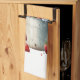 A kitchen towel with a summery graphic of a bunch of strawberries overflowing in a bucket.