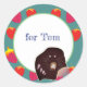 Cute custom sticker with strawberries and mole, for kids parties and celebrations.