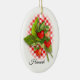 This oval keepsake ornament has a very real looking vintage strawberry image on the front. I have used a red and white checked gingham background behind the strawberries to set of the redness of the berries and the beautifully shaded green leaves. The gingham oval fades at the edges for a country rustic look. The name on the front can be changed. On the back is text which says, "I love you berry much." and the name of the gift giver. You can also change this text.