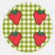 Strawberries on Green Gingham Classic Round Sticker