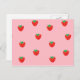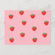 Strawberries Pink postcard. Customisable postcard has cute red strawberries on a light pink background.