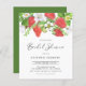 Invite guests to your event with this customizable bridal shower invitation. It features watercolor garland of strawberries and strawberry blossoms. Personalize this strawberry bridal shower invitation by adding your own event details. This berry bridal shower invitation is perfect for summer bridal showers.
