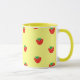 Strawberries Yellow coffee mug. Customisable mug has cute red strawberries on a yellow background.