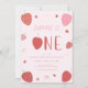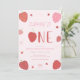 This editable pink berry first birthday party invitation sets the tone for your strawberry theme first birthday celebration. The ICHIGO Collection features a light pink background with doodles of strawberries in red and pink, plus hand drawn bows. ONE is spelled out with a strawberry and hand drawn letters in red. Playful handwritten, serif and sans serif fonts in red and pink with all editable text completes this girl strawberry 1st birthday party invitation. Perfect for a girl's summer 1st birthday theme!