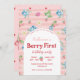 Strawberry 1st Birthday Berry First Pink Birthday Invitation