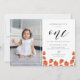 Cute strawberry illustrations, 1st birthday photo invitation. Card features, red illustrated strawberries border, pretty "one" script graphic and coordinating black and white stripe pattern backing.