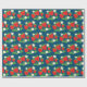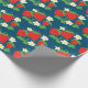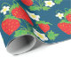 Strawberry and Flowers Pattern Blue Wrapping Paper