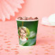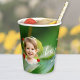 Serve in style with these berry-themed paper cups featuring a photo by Destei of a red wild strawberry among fresh green leaves. The design includes a spot to add your child’s photo, framed by three red hearts that tie into the berry theme. The personalised text reads “(Name’s) berry first birthday celebration,” making these cups a perfect match for your party table and a sweet touch for your little one’s special day.