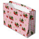 This cute gift bag has strawberries and blossoms on a red gingham background. It's perfect for a rustic country wedding or birthday gift. It would also work for a Berry Sweet baby shower theme. Search for "Strawberry" in my shop to see coordinating items.