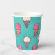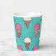 Planning an ice cream party or kids birthday? Add a touch of fun with Strawberry and Vanilla Ice Cream Paper Cups on a cute turquoise background. Perfect for summer sweet treats!