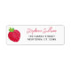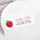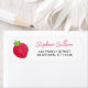 This baby shower return address label is decorated with a watercolor strawberry and stylish script typography.