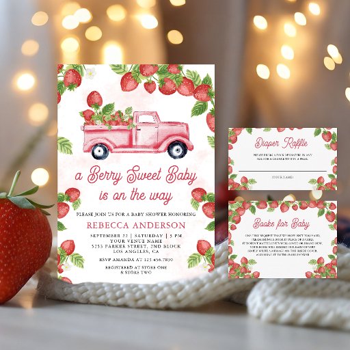 Elegant baby shower paper napkins featuring beautiful strawberries and modern typography.