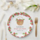 Elegant baby shower paper plates featuring beautiful strawberries and modern typography.
